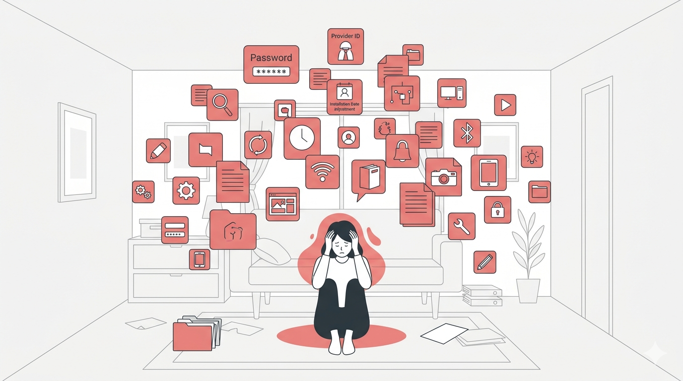 私たちは日々、目に見える部屋の散らかりばかりを気にしがちですが、本当に私たちを疲れさせているのは「プロバイダのIDやパスワード、複雑なネットワークの仕組みを覚えておかなければならない」という、頭の中の ...
