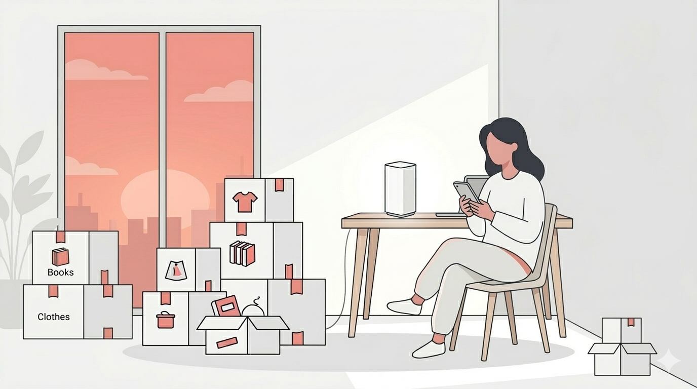 home 5Gは、ハサミやゴミ袋と一緒に「新居ですぐ開ける用」の特定のダンボールに入れておきましょう。必要な時にサッと取り出してコンセントに挿せば、荷解きの最中も通信量を一切気にせずインターネットが使えます。お気に入りの音楽や動画を流しながら、自分のペースで新生活の準備を進められますよ。